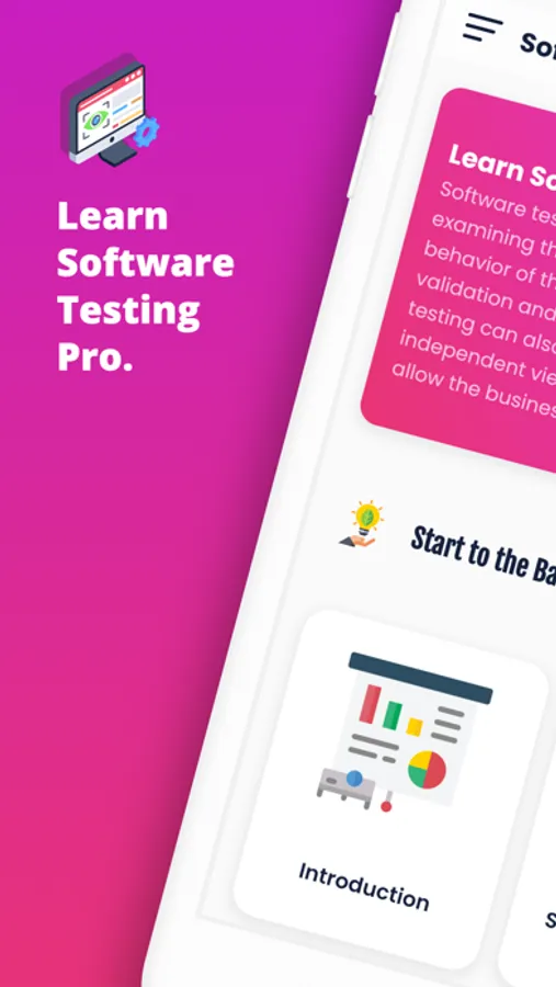 Learn Software Testing app has a really simple and intuitive user interface. It is the best app to let you Learn Software Testing. So, what are you waiting for now download this app now and start Learning Software Testing. The app contains topics that will help the beginners understand and Learn Software Testing easily.