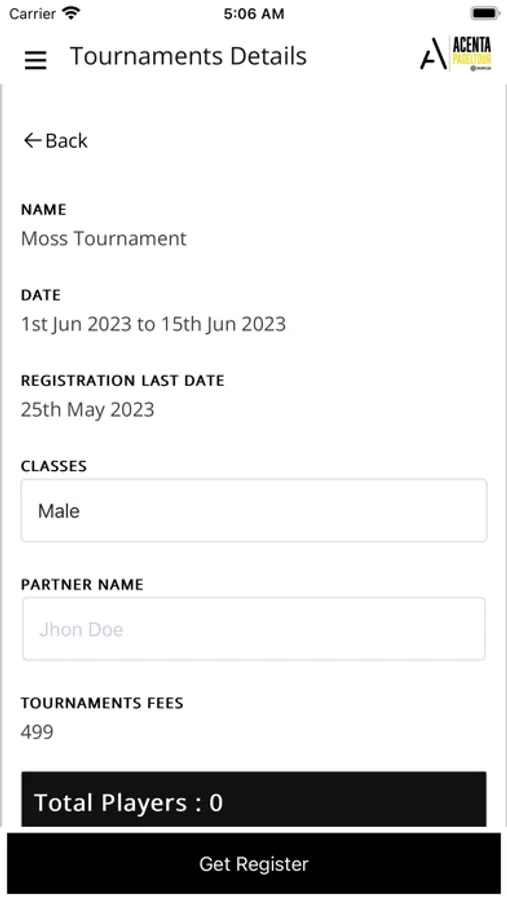 Are you a Padel player and looking for a best class tournaments to play with new players and have a great team. Register yourself with this application and have an oppurtunity to play with players from other city.