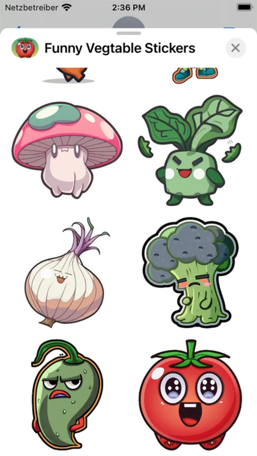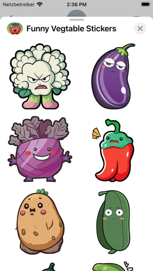 Download Funny Veggie Stickers now and start spicing up your conversations with some vegetable humor. It's the perfect way to add a touch of fun and lightheartedness to your messages.