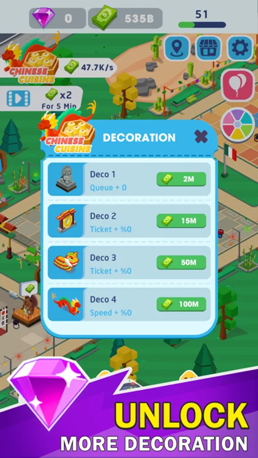 The best part? Even when you're not playing, your park keeps thriving, thanks to the idle gameplay feature. So sit back, relax, and watch your Cuisine Park flourish.