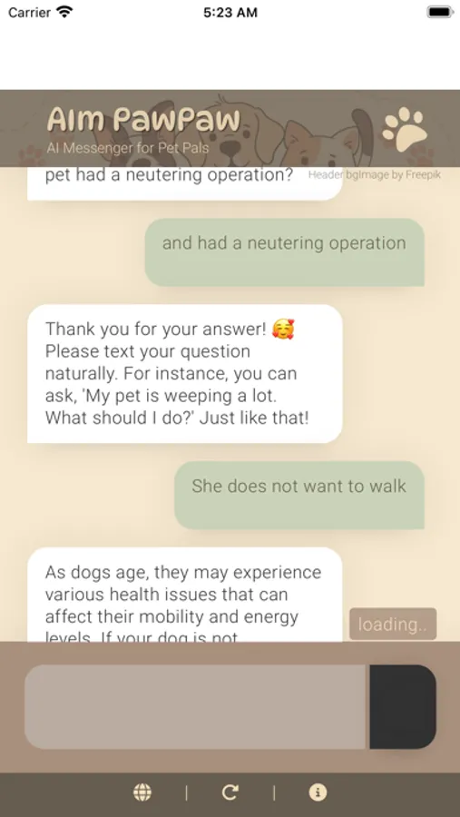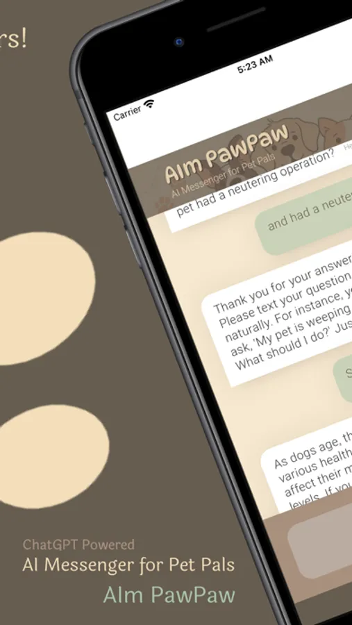 Having trouble finding the right answers for your beloved pet? Look no further! Introducing AIm Pawpaw, the app that lets you ask questions and receive mostly reasonable answers. Our app is powered by the latest Chat GPT technology, specifically tailored for pet lovers like you. Communicate in a natural language and have meaningful conversations with your furry friend. AIm Pawpaw is here to be your helpful assistant and support your lovely pet every step of the way!
