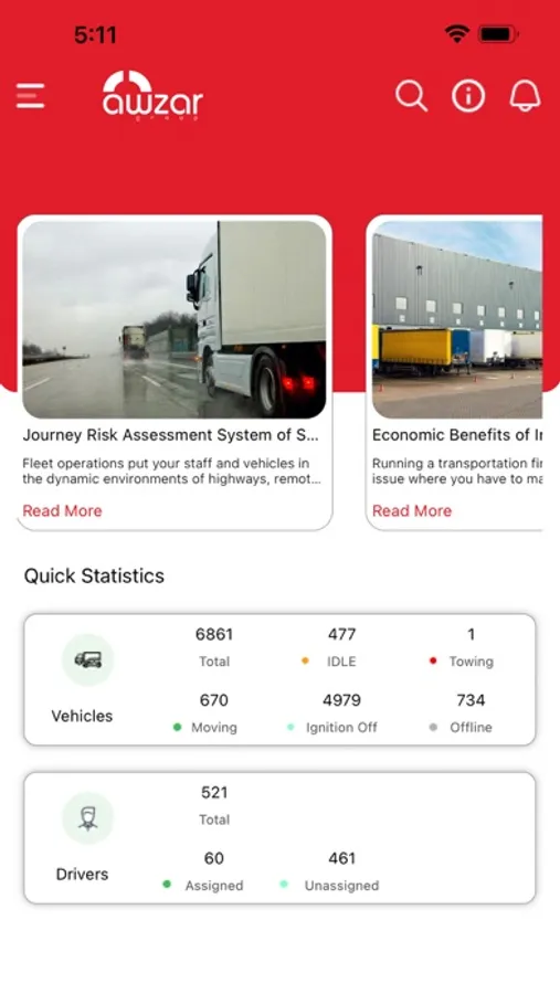 Awzar Track app is a fleet management platform that allows fleet admins to monitor, get notified, manage, and build profound reports about their assets. Awzar Track mobile application has come to increase the accessibility of users to their assets. The app lets the users to accomplish wide range of functionalities on their assets passively. They can build a subset of reports, monitor, and get notified through user-defined push notifications.