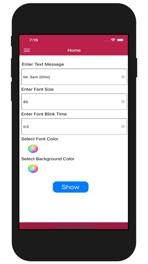 App allows easily to change welcome sign (Sign Board) text, color, size, create blinking text sign.