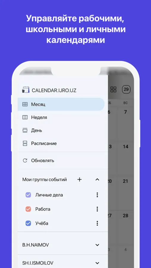 - Импорт событий из других программ календарь