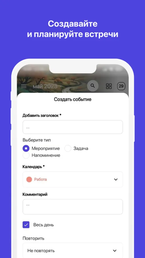 - Создать напоминания о событиях до их начала