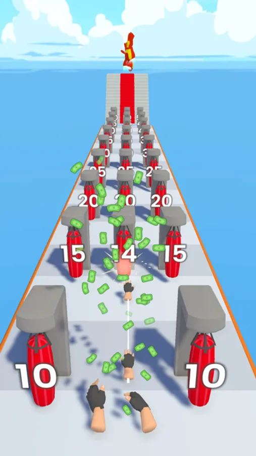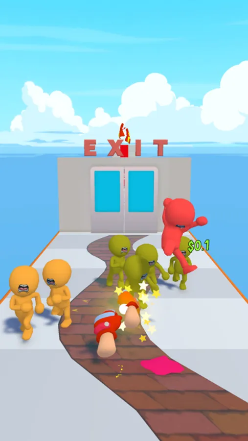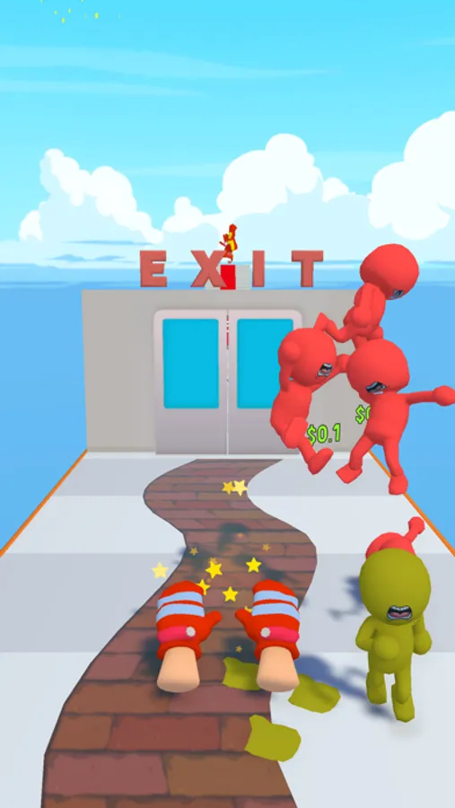 The stickmen you slap will get angry and go to the conveyor, then they will come back and gather on top of you. Defeat them at the gym and upgrade with the game coins you earn.