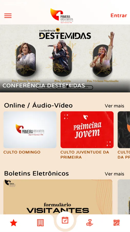 * Conteúdos (Áudio/Vídeo): Permite visualizar e ouvir os conteúdos da Igreja disponíveis no App;