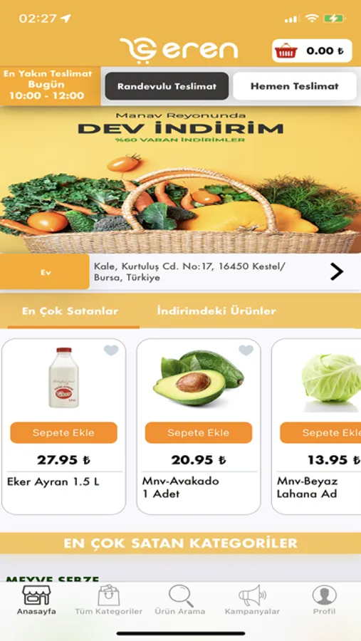 Eren Sanal Market Uygulamasıyla 10.000'den fazla ürün çeşidini, dilerseniz dakikalar içerisinde, dilerseniz istediğiniz saat aralığında kapınıza kadar getiriyoruz. Ayrıca kampanyalarımızdan ve size özel indirimlerden haberdar olmak için de uygulamamızı kullanabilirsiniz.