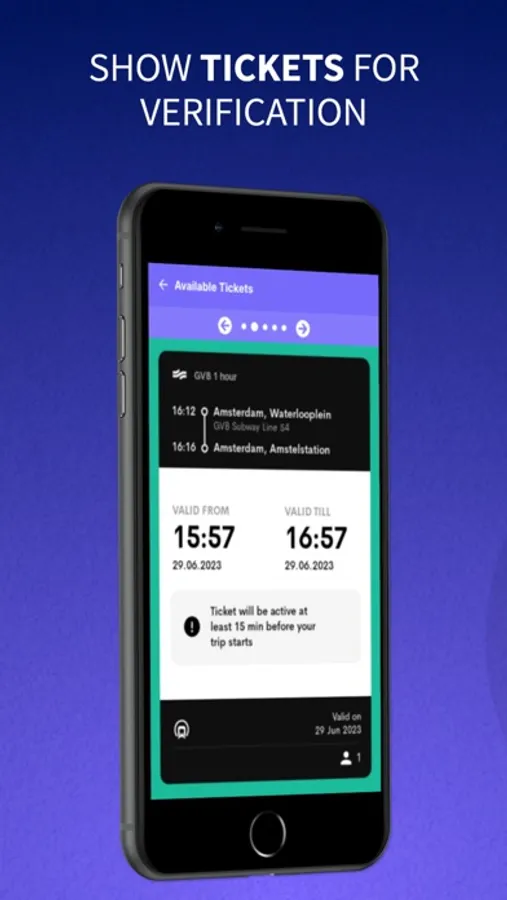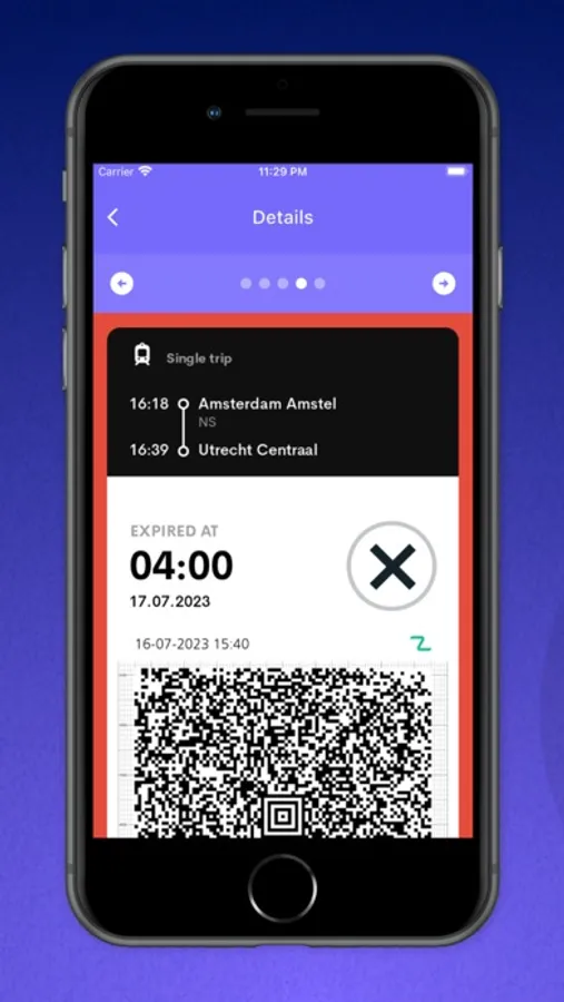 For example, public transport operators like NS, RET, HTM, and GVB require eTickets to be displayed at full brightness for gate opening or inspection purposes. Moreover, Thales gates at train and metro stations necessitate the temporary deactivation of NFC when using QR code-based eTickets. Alternatively, an EMVc card can be used to record payment information for check-in and check-out processes.