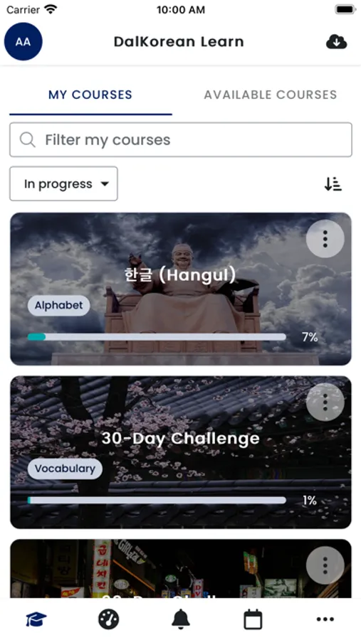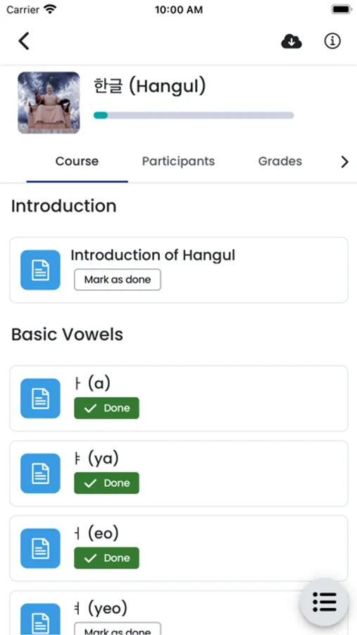 This is an application to learn Korean easily and in a fun way. Choose a course that you want to learn.