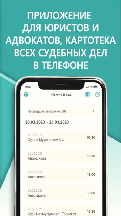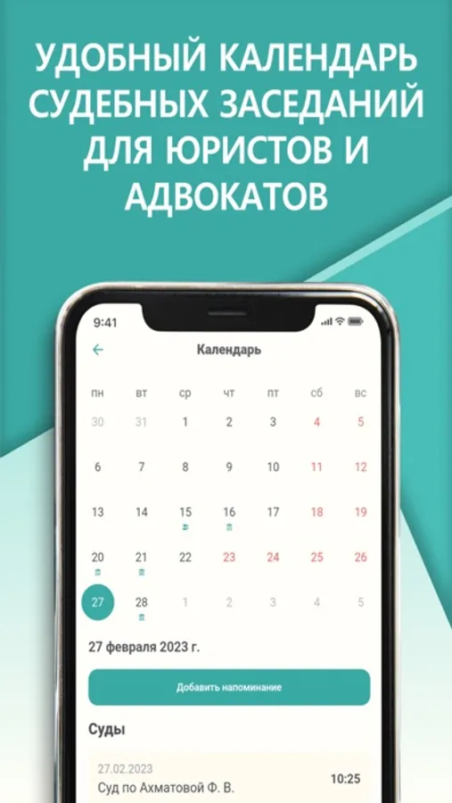 Суд и юриспруденция. Уникальная отечественная разработка, приложение для ведения судебных дел для юристов и адвокатов, напомнит юристу и адвокату о предстоящем судебном процессе, приложение для юристов и адвокатов напомнит о последнем сроке подачи жалобы, уведомит о важной встрече или звонке, поможет адвокату или юристу вести судебные дела и правильно подсчитать судебные сроки. Поможет юристу и адвокату не пропустить назначенные даты. Юрист или адвокат сможет в любое время посмотреть на календаре юриста нужную информацию, не пользуясь компьютером.