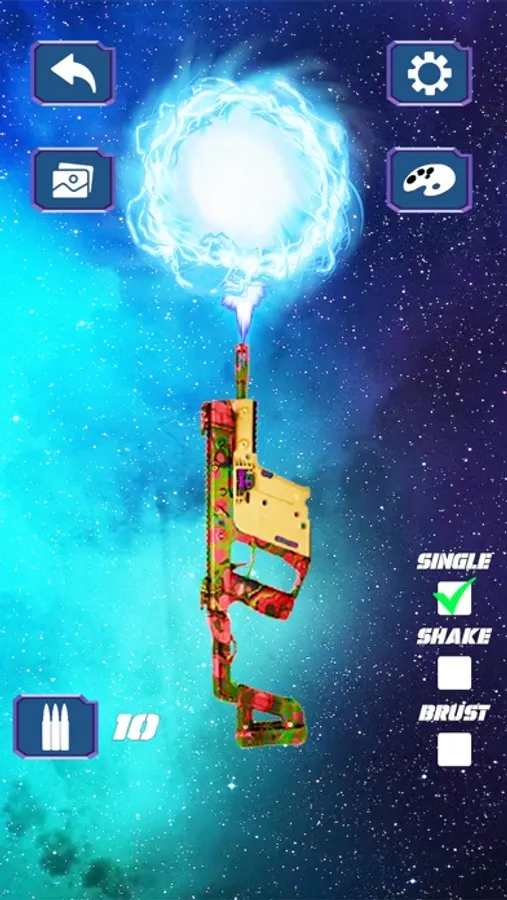 - Choose any mode in the sci-fi weapons 3d light sound gun simulator.