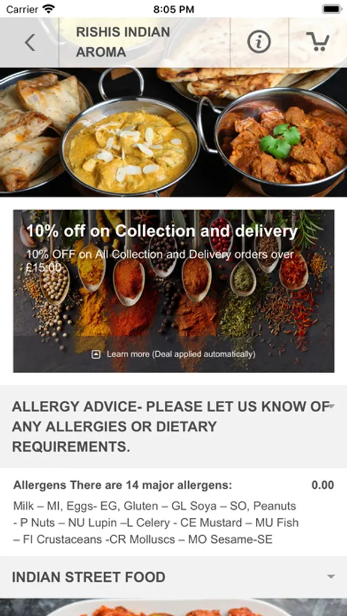 - Online food ordering optimized for your mobile device.