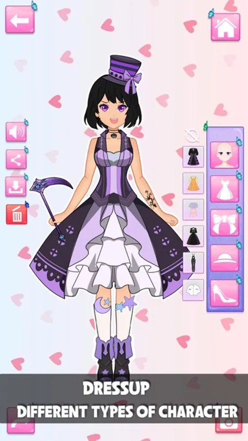 - Create your own charming heroine using any combination of available costumes and hairstyles!