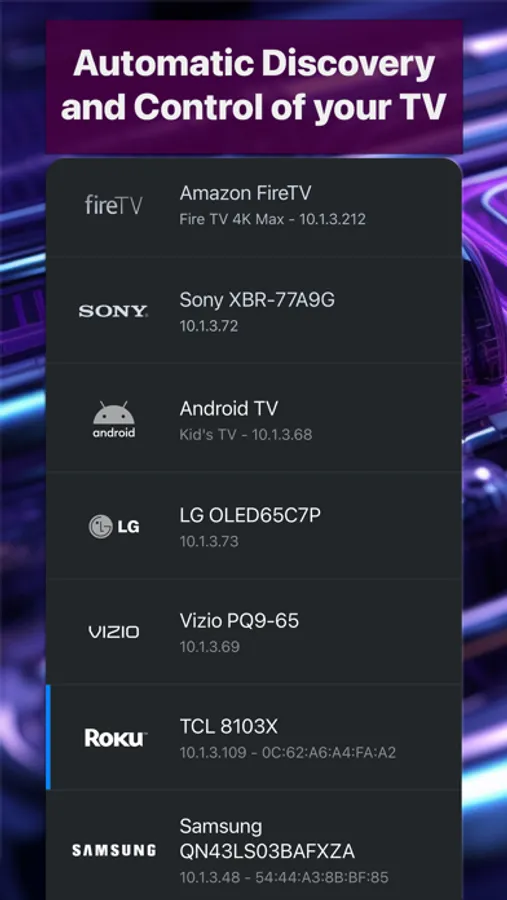 • Automatic Discovery of TVs on your network