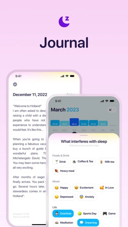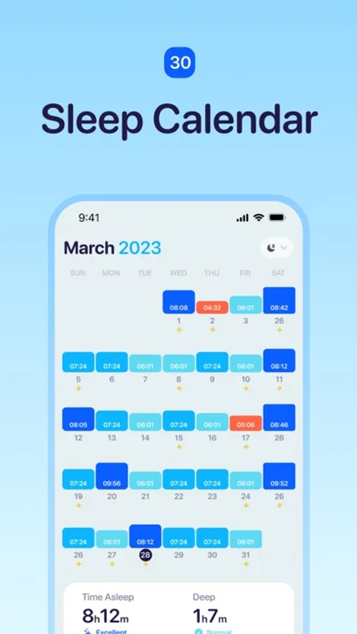 - Review your sleep through a clear and intuitive calendar, helping you understand your recent life and sleep habits.