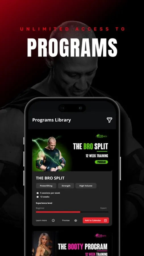 Expertly Crafted Programs: Gain access to a diverse range of strength training programs meticulously developed by coaches with over 20 years of experience. Each program is tailored to specific fitness levels, goals, and preferences. Whether you're a beginner looking to establish a foundation or an advanced lifter aiming to reach new peaks, our programs provide the roadmap to your success.