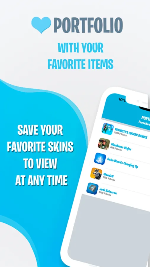 ·· Portfolio: Create your own portfolio with your favorite skins to see your preferred items at any time.