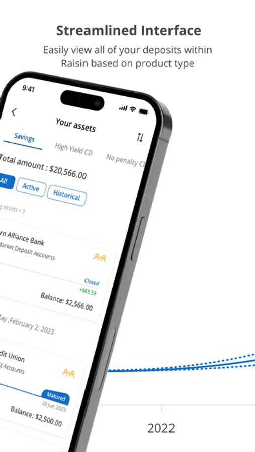 With a single secure Raisin login, you can fund savings products across our exclusive nationwide network of federally insured banks and credit unions. It only takes a few minutes to open a free account and verify your identity, allowing you to access savings products from any of our partner financial institutions without needing to enter sensitive personal information multiple times. We are more than a rate comparison tool — we're a single platform that allows you to manage all of your short- and long-term savings iin one intiutive dashboard and secure your savings.