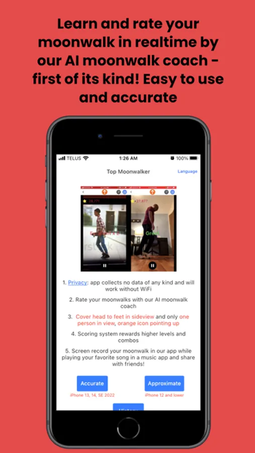 Learn and rate your moonwalk dance by our AI moonwalk dance coach - first of its kind!