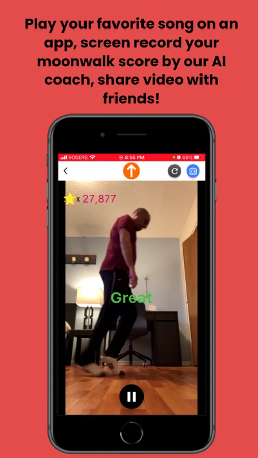 Play your favorite song in another app, then screen record your moonwalk in our app, and share the video with your friends!