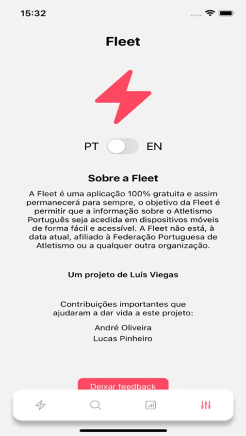 A Fleet é uma aplicação 100% gratuita que disponibiliza informação em tempo real sobre o resultados de competições atuais, passadas e futuras. Disponibiliza também informações sobre os clubes e atletas do atletismo português.