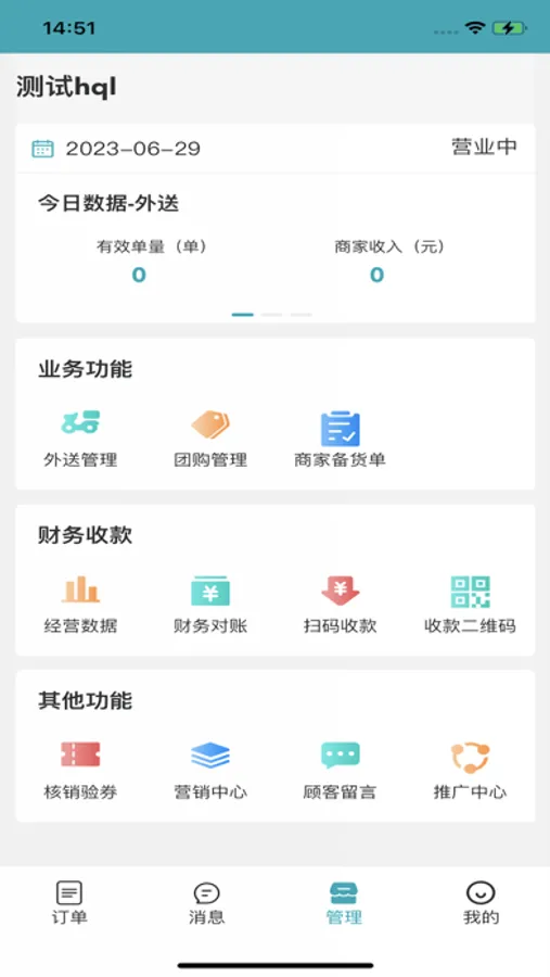 云萌店长端,可以对外送订单、团购、商家备货单进行管理。对经营数据、财务对账等信息进行统计等。