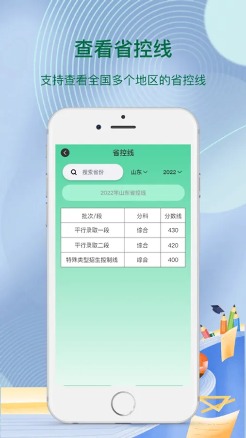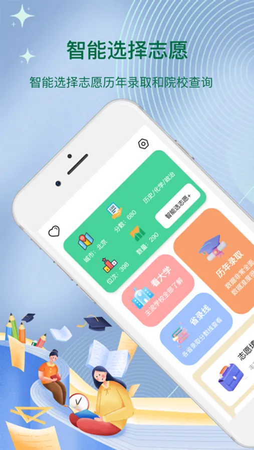智能选志愿,一键帮助用户选择适合自己的高考志愿学校;看大学,全国主流大学全都包括,数量类型丰富;省控线可以查询全国各省的录取分数线;历年录取让你快速知晓各个高校历年录取的分数线;志愿填报工具包括志愿资料文字识别翻译、大学品牌识别等;高考指南为你提供多种高考填报指南;高考倒计时让你随时关注高考动态。