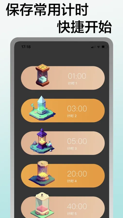 The use of multiple color combinations, coupled with multiple cartoon themed pattern choices, up to 70 main images, and the appearance of a random hourglass, give the timing process a new experience and a pleasant mood.