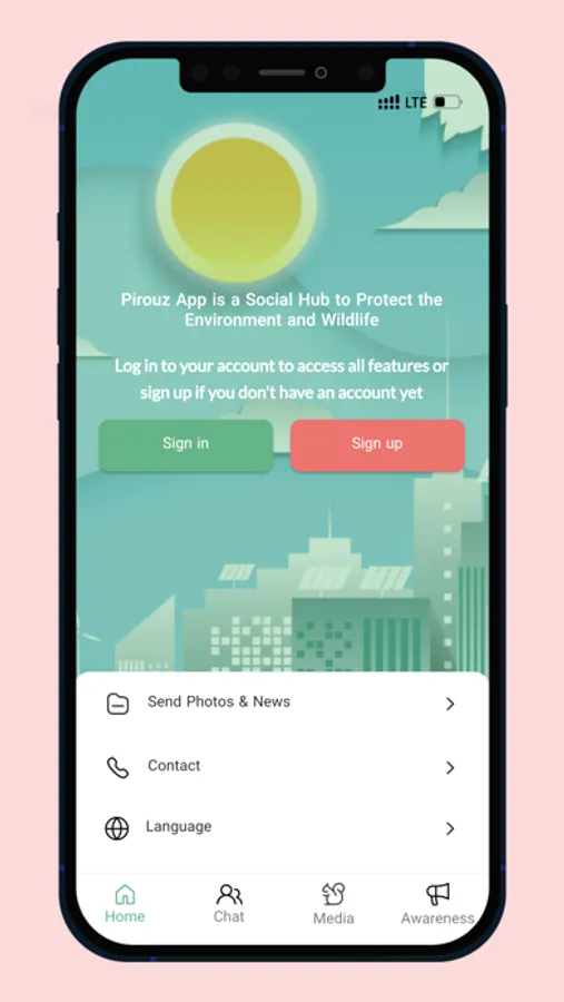 Pirouz is a social app to protect the environment and wildlife. The app consists of three main sections: