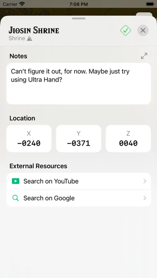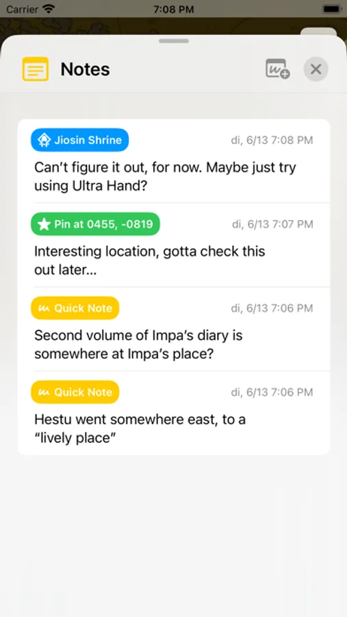You can easily add notes to any location and pins on the map, and you can also make Quick Notes while you are playing the game. The game has an easy list that shows you all notes you have created. And keeping track of todo's is also easy with the Tasks feature that you'll find in the app.