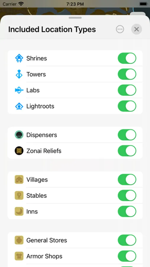 The app provides a spoiler-free experience: by default all locations and regions are hidden. Only as you unlock them in the game, you make them visible in the app as well. This means you can explore Hyrule and use this app without being spoiled by seeing everything the game has to offer. But if you just want to unlock everything in one go, that's possible as well of course.