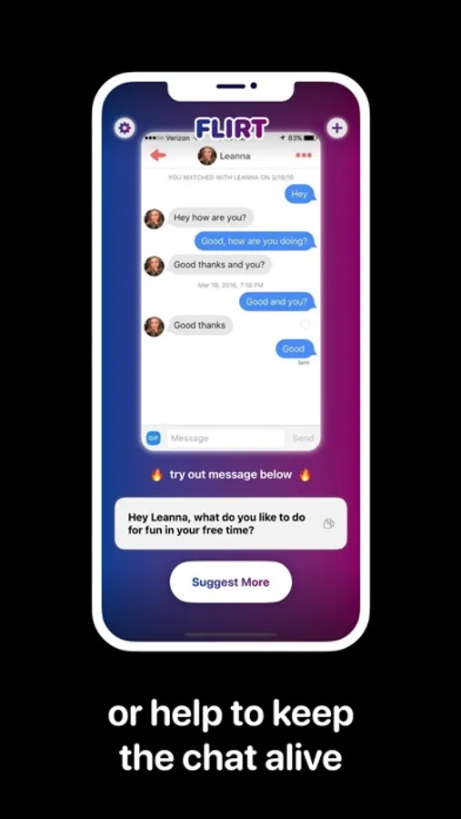 FLIRT ensures you always have the perfect response to keep the conversation flowing. Say goodbye to awkward silences and hello to engaging chats.