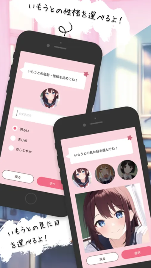 「いもうとーく」の使い方は至って単純!自分好みの妹の見た目と性格を決めるだけ!
