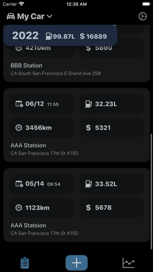 A simple tool records your fuel cost.