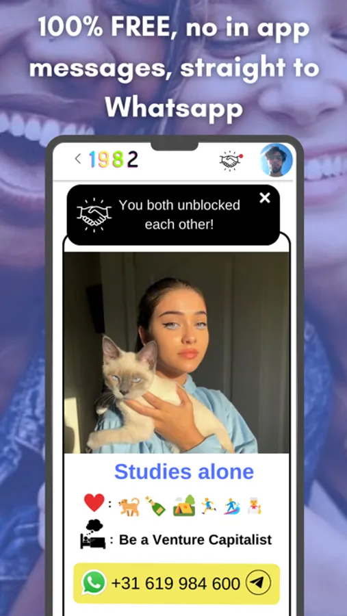 •If you both unlock each other, you get each other's WhatsApp number, no in-app messaging.
