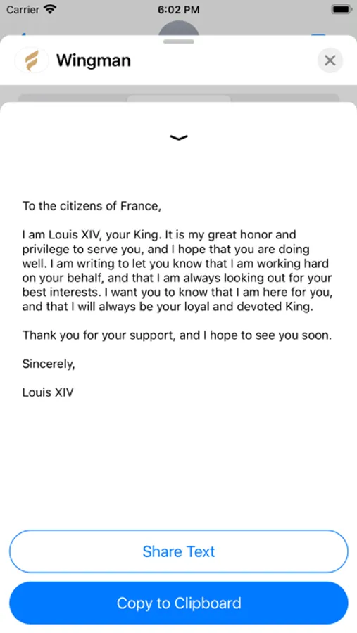 Wingman is a sophisticated iMessage application, developed to revolutionize your communication process with the aid of cutting-edge AI prompts. Drawing its power from the advanced AI, this app is a useful ally across a multitude of applications. From composing emails and engaging in lively text conversations with friends, to creating blog posts and crafting compelling social media content, Wingman is equipped with AI-driven capabilities to ensure your words consistently hit the mark with precision and originality. Discover the evolution of communication with Wingman.