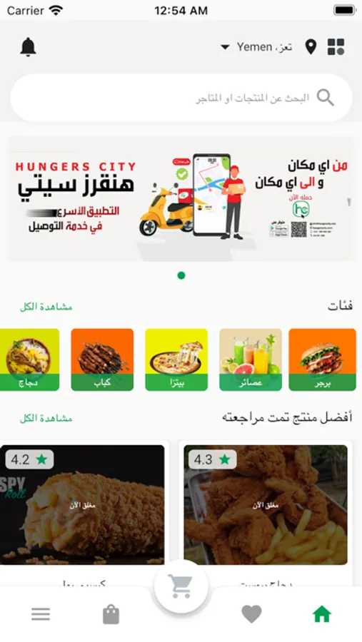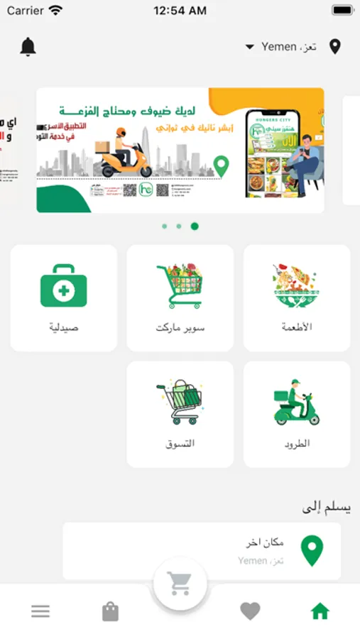 تطبيق هنقرزسيتي يسمح للعملاء داخل مدينة تعز حاليا باليمن من طلب الطعام والبقالة والصيدليات والطرود من إي مكان وفي إي وقت
