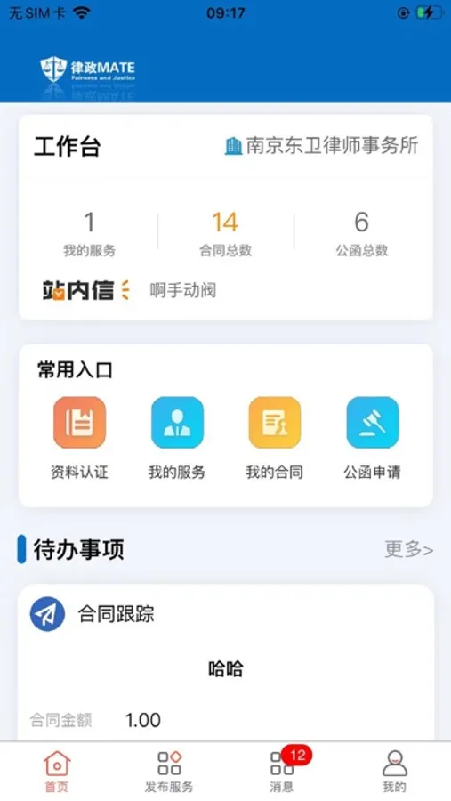 供律师和客户在线沟通,创建合同,公函,所函的应用