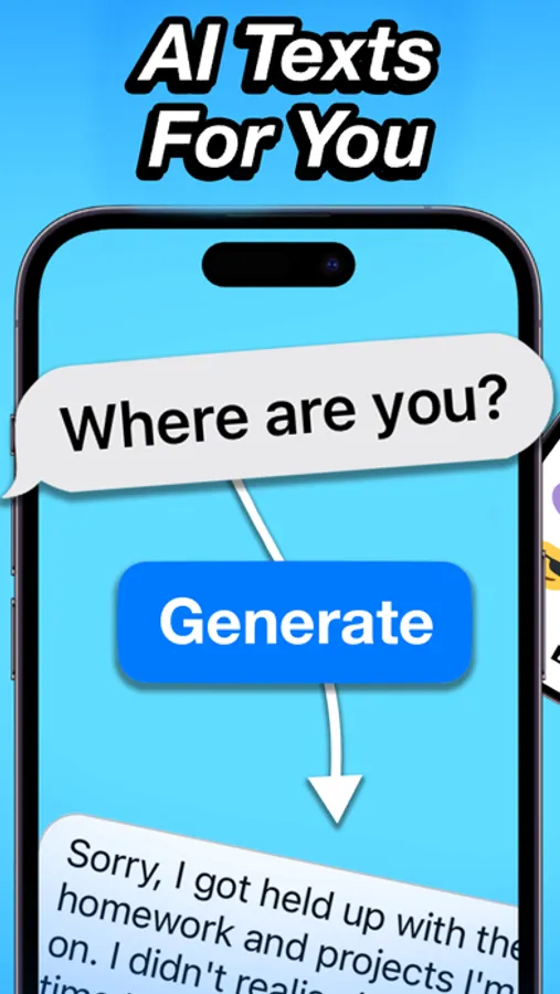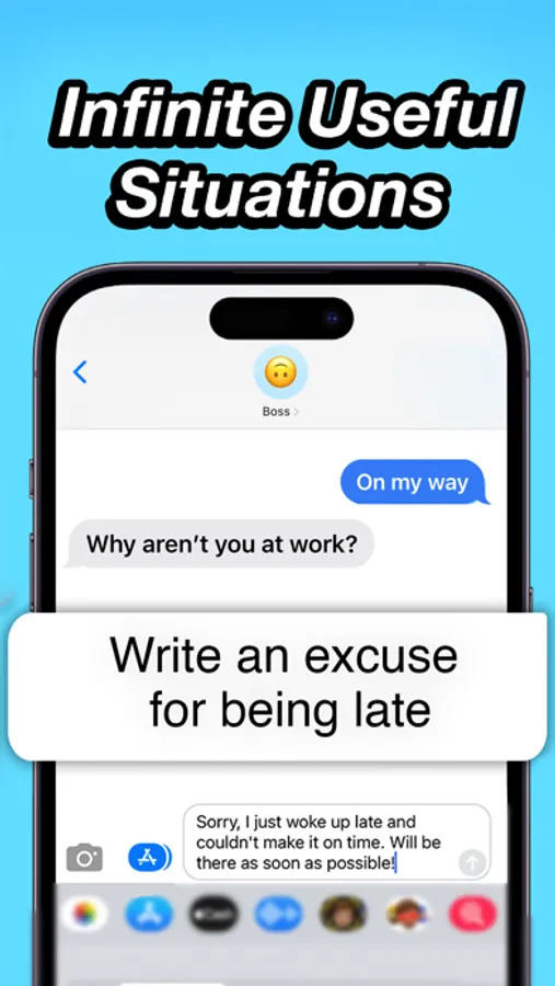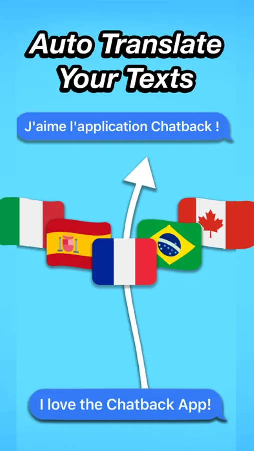 Chatback: Your AI Text Buddy for iMessages! Chatback is an AI-powered iMessage App which generates text messages, replies, and instant translations. For the first time ever, you can instantly translate texts inside of iMessage. Unsure of how to respond to that message? Chatback can help! Want to make your friend laugh with a text? Chatback is the trick up your sleeve. Want to write texts with your favorite character's voice? Chatback has it all!