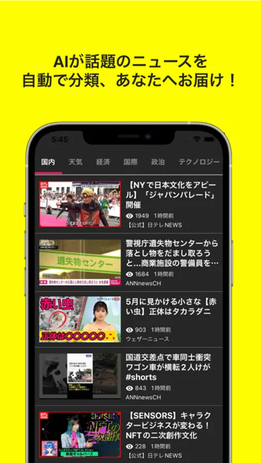 国内ニュース、天気、経済ニュース、海外(国際ニュース)、政治ニュース、テクノロジー(IT)、スポーツニュース、エンタメニュース、グルメ、動物ニュース