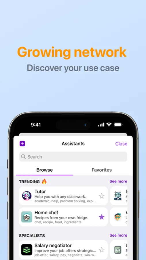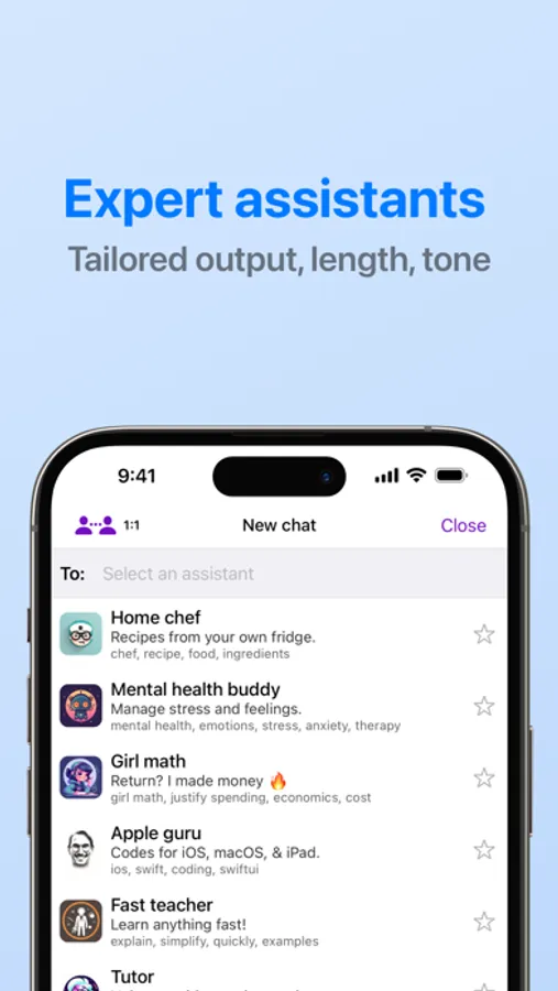 Bring all your favorite assistants together in one group chat, to get input from two or more assistants. Get a wholistic answer to your question or topic.