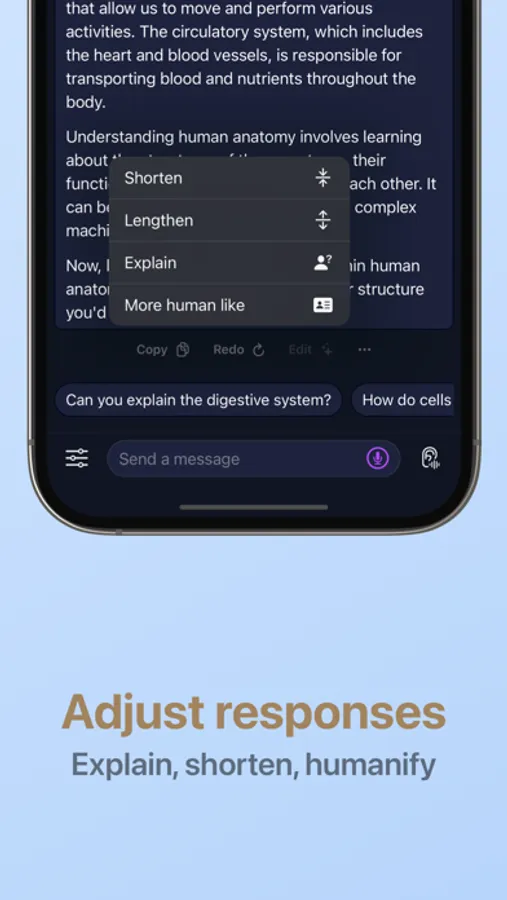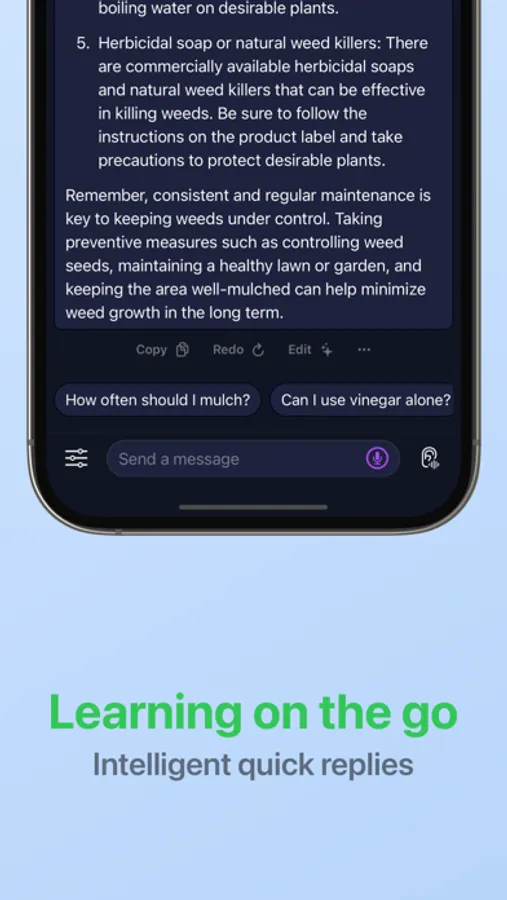 Expand your knowledge with quick replies, designed to deepen the conversation and help you learn more about the world around you, on any & every topic.