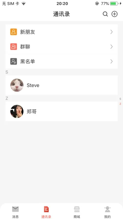 1.通讯录,支持好友验证,二维码,设置标签,拉黑置顶等;