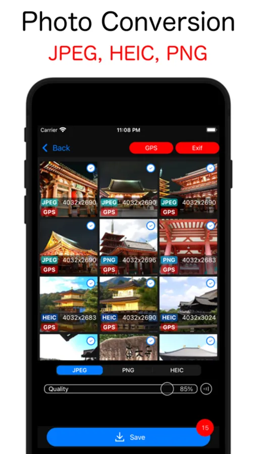 3. Select the format to save (JPEG, PNG, HEIC) and tap Save button.