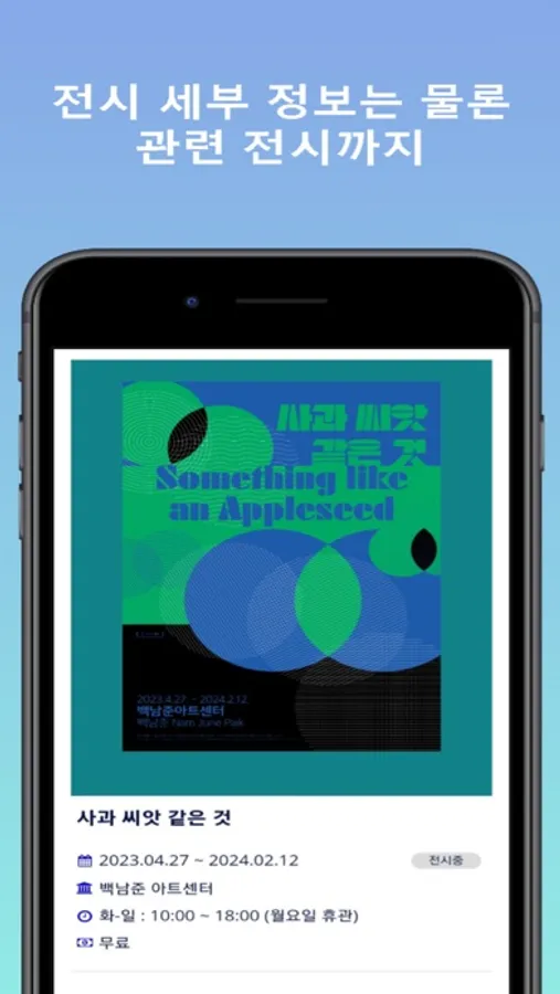 - 원하는 취향의 전시를 지역, 작품종류, 전시종류 등의 태그로 빠르게 찾아보세요!