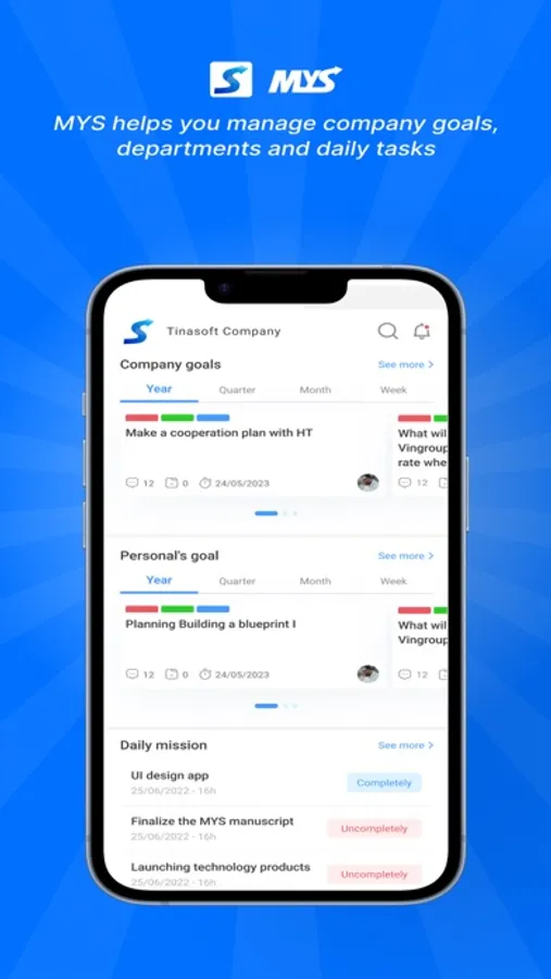 Manage goals with TinaMYS - Mapping your success, a breakthrough solution for businesses. With multi-dimensional vision, flexible intelligence and effective optimization capabilities, TinaMYS provides comprehensive support for goal management. Easily track progress, align strategy, and identify specific action steps. Discover how TinaMYS can redefine the way your business performs and achieves its goals with innovation and innovation.