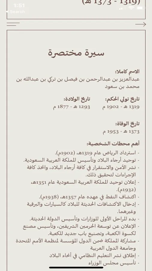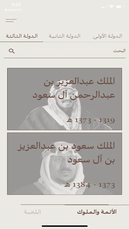تعرف على سِيَر أئمتنا وملوكنا. يحتوي التطبيق على قائمة بأئمة السعودية وملوكها بدءًا من الدولة السعودية الأولى وحتى المملكة العربية السعودية، مع إنجازات ومعلومات عامة عن كل إمام وملك وأسئلة لاختبار معلوماتك عنهم، بالإضافة مكتبة صور وفيديو وكتب صوتية.