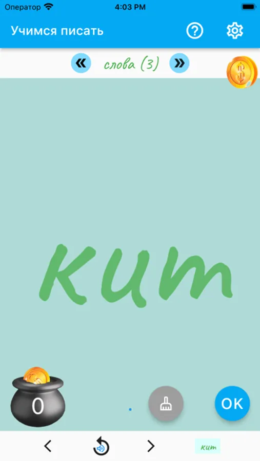 Каждое слово разбивается на буквы, и сначала учимся написанию отдельных букв, потом уже всё слово.