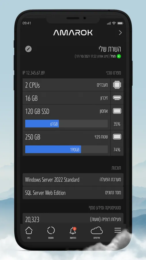 A First version of Amerok’s cloud services management application alongside a useful toolbox. Coming soon: setting up a cloud network drive, setting up virtual servers and monitoring resource availability, tracking backup services, alerts on storage space availability and more.